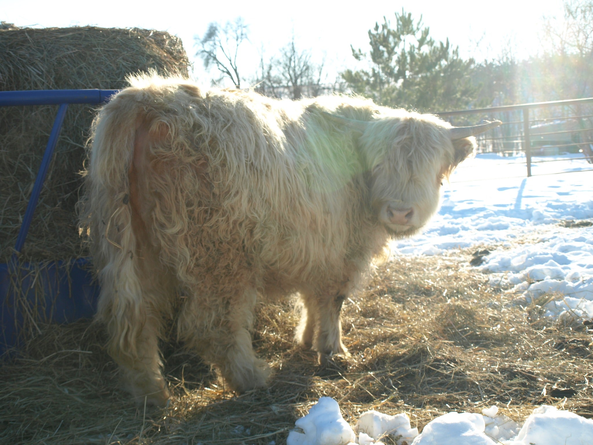 Olive is one of our foundation cows. Olive has produced a great calf every year. Olive has great struture and is a large Highland Cow. Olive is sire by DH Dalton who is from Gilchrist Kodiak the 1996 GC Bull.