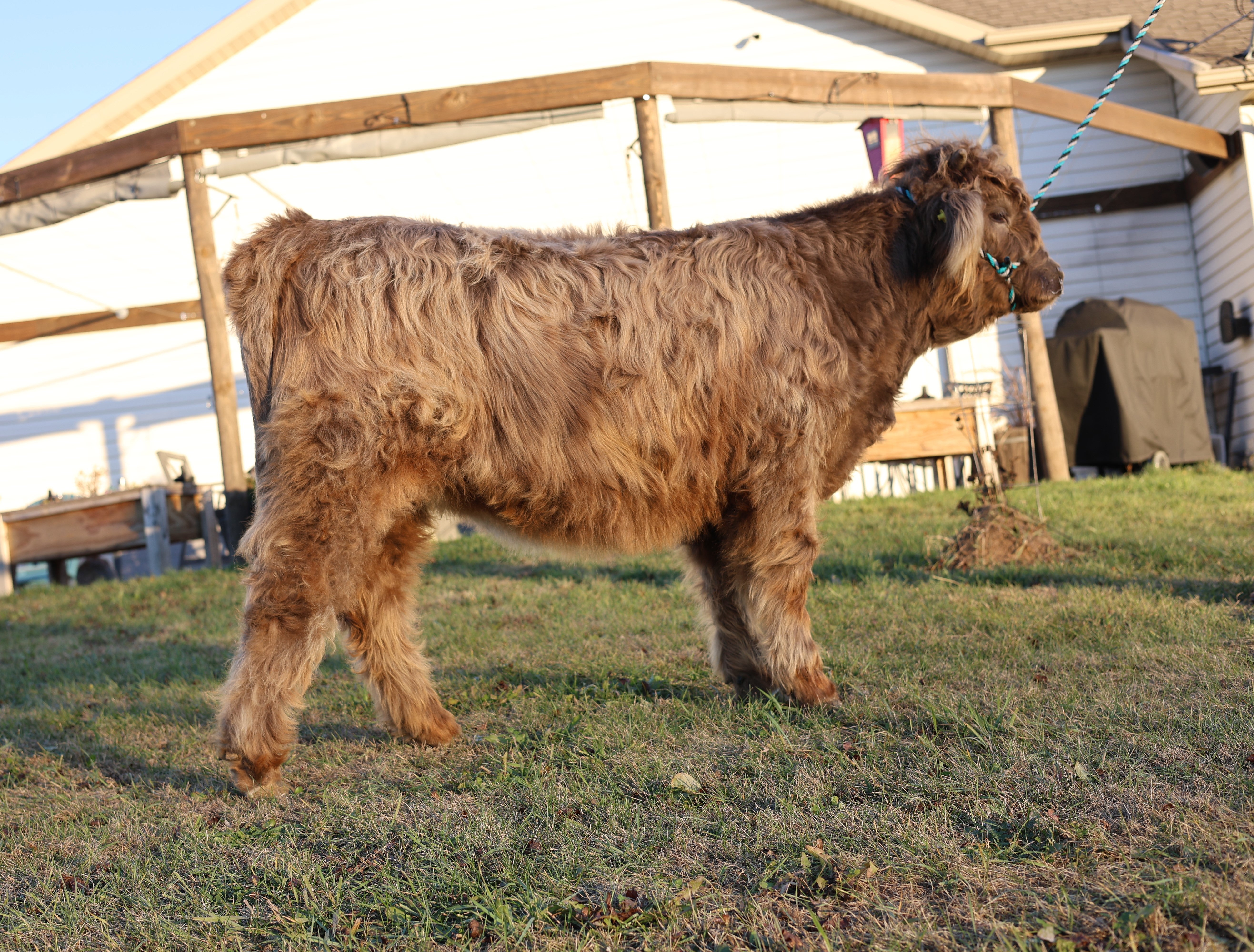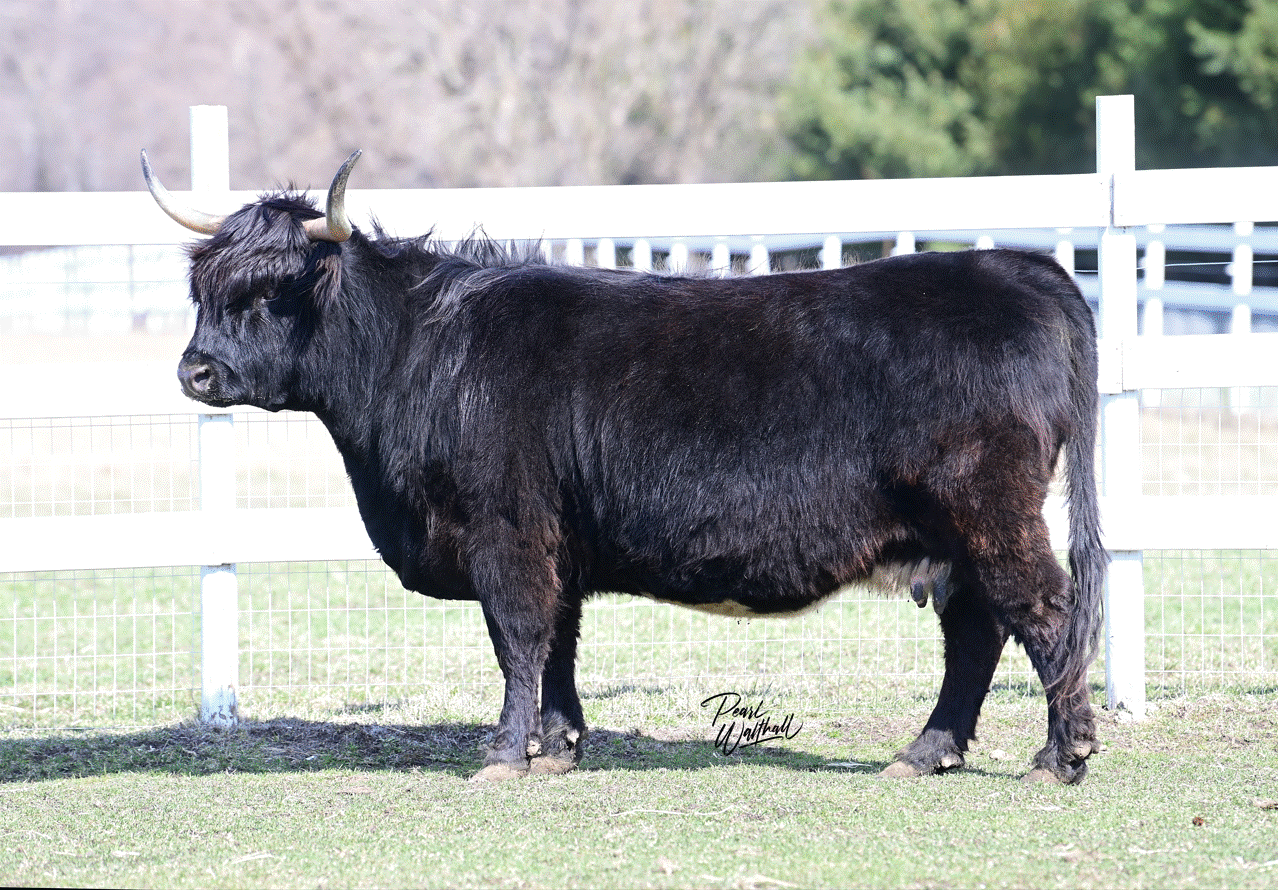 Charlotte is a sweetheart who loves attention and loves to say hi when you walk in the pasture. She has great lines and a smooth stride. She packs a punch though in her stature and will be sure to be good breeding stock. In addition to her great demeanor and structure, she has an amazing pedigree. Charlotte is sired by GH Mclintock the 2008 NWSS Reserve Champion bull. Charlotte’s dam is HVF Lady Mallory, who is one of our foundational cows. Mallory has produced some amazing progeny Charlotte included and continues to be a great broody cow even now into her teen years. Charlotte will surely make a great addition to your farm.