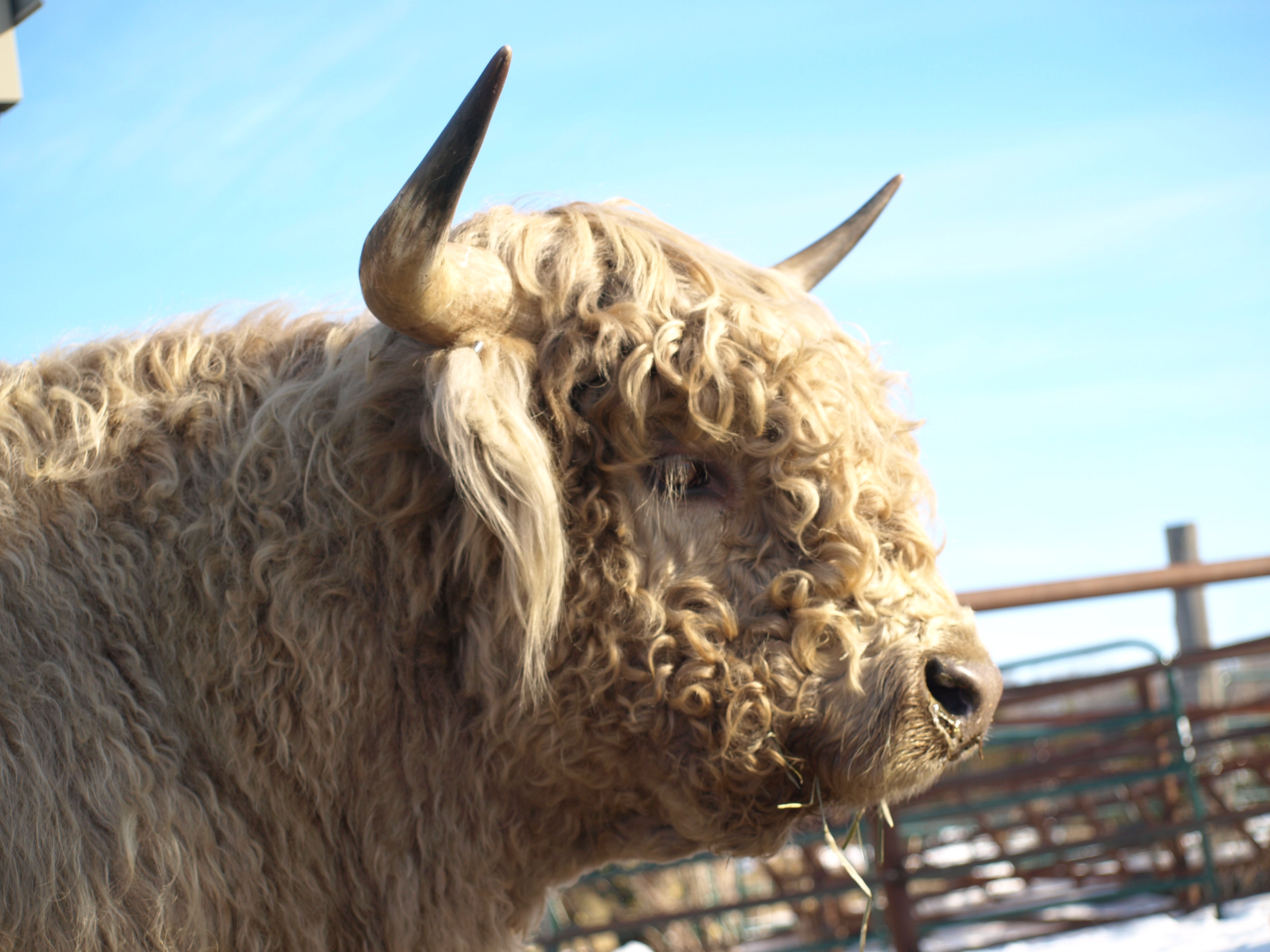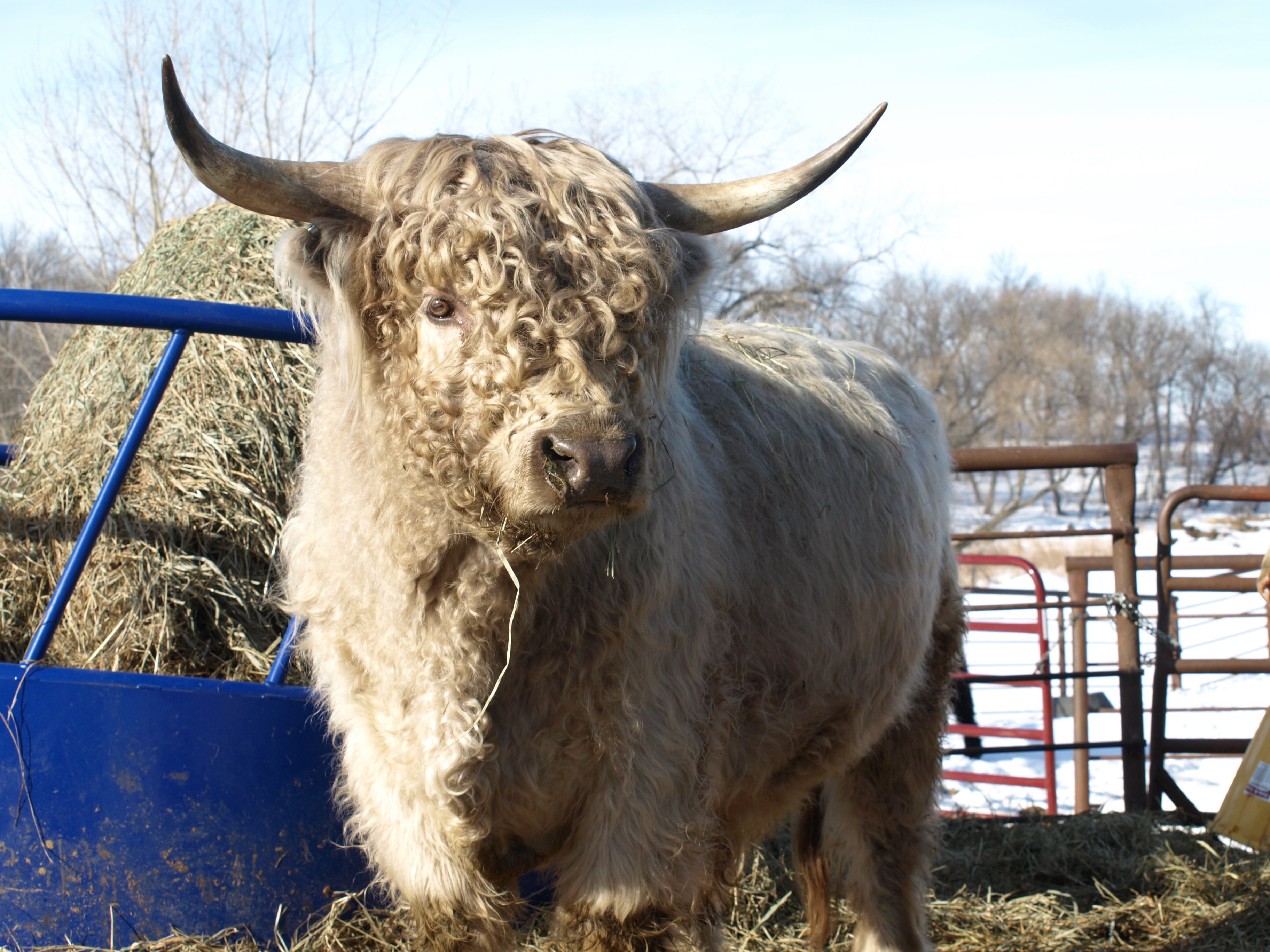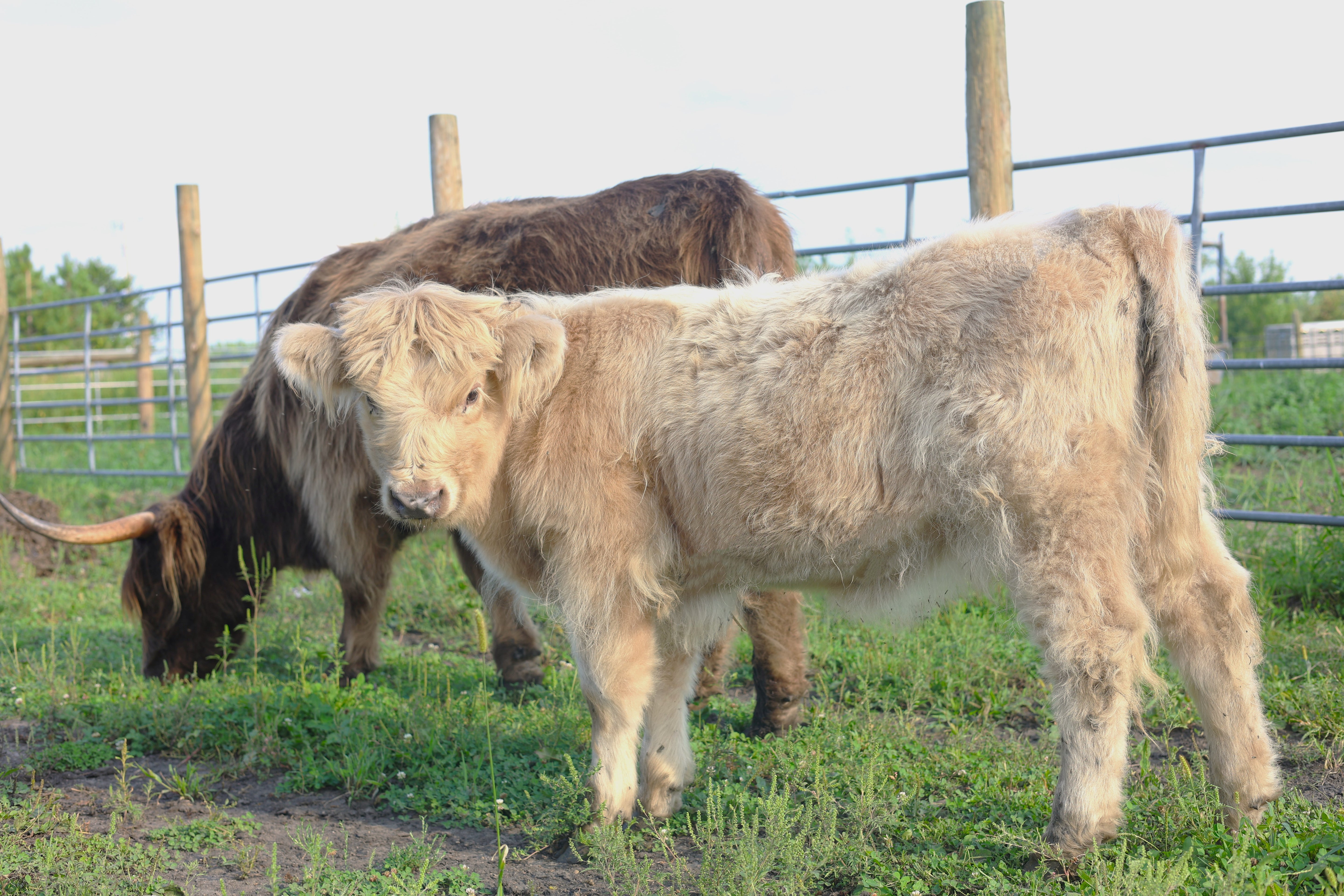 The son of Angus the 8th of Dunvegan, imported from Scotland was an extremely long bull who was a great representative of Scottish character. Genesis’ dam is Black Watch Portia, a fancy silver cow that was shown extensively, Genesis was 70 lbs. at birth, 725 lbs. at one year old, 1,145 lbs. at two years old and currently weighs 1,560 at 34 months.