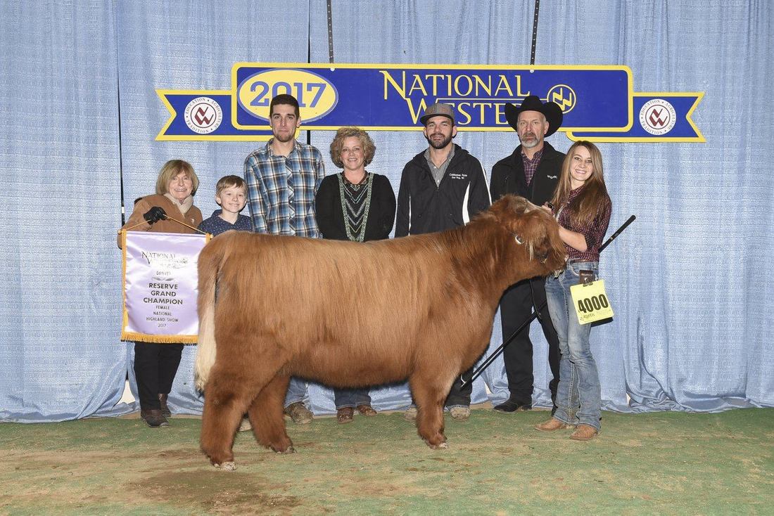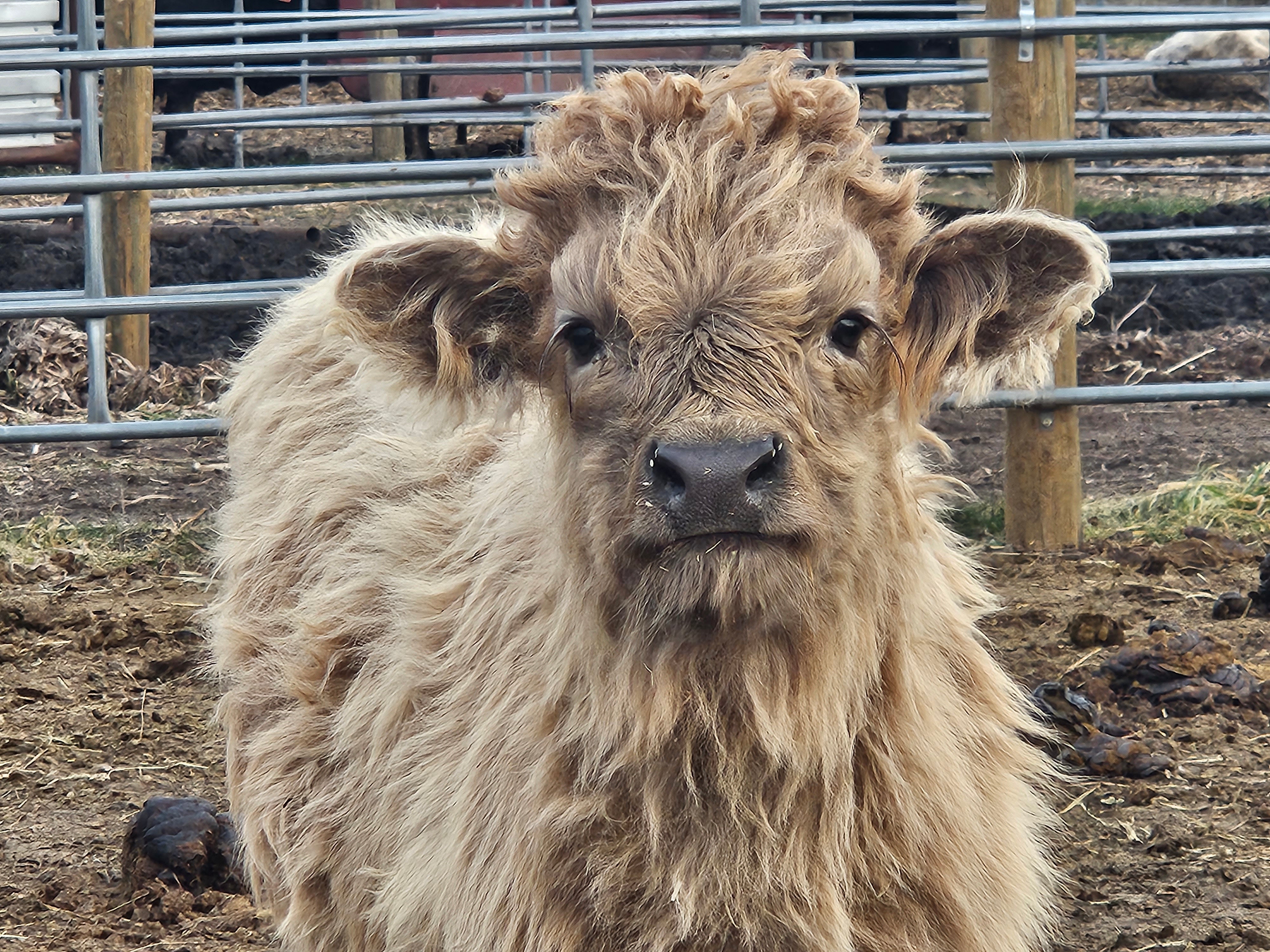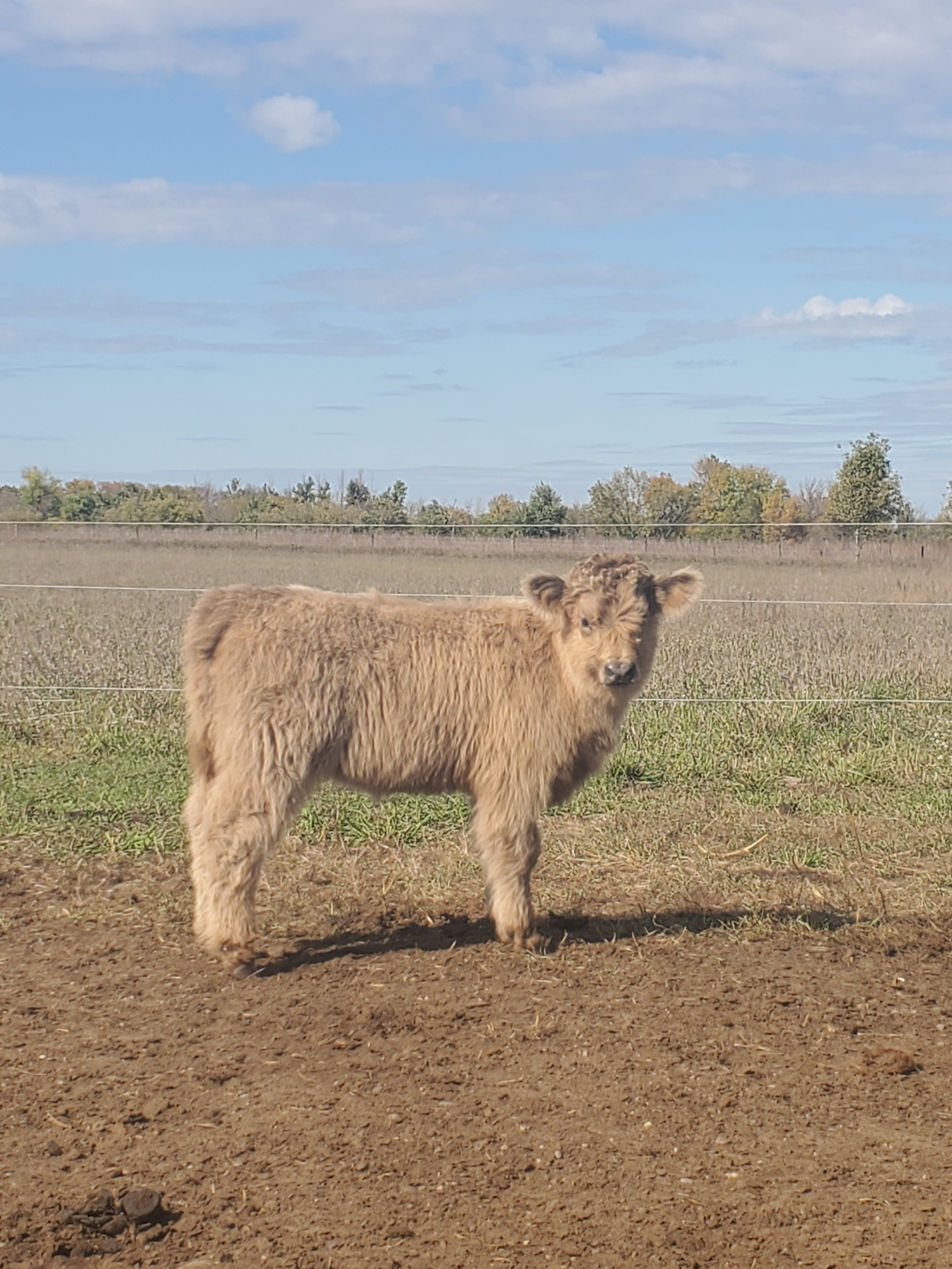 The son of Angus the 8th of Dunvegan, imported from Scotland was an extremely long bull who was a great representative of Scottish character. Genesis’ dam is Black Watch Portia, a fancy silver cow that was shown extensively, Genesis was 70 lbs. at birth, 725 lbs. at one year old, 1,145 lbs. at two years old and currently weighs 1,560 at 34 months.